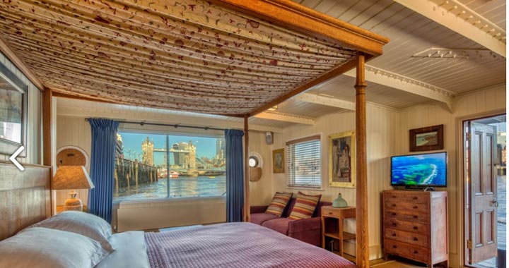 I’ve already mentioned a super yacht, well this one doesn’t quite stand up for its size but this floating home will offer you a much more affordable way to stay on the Thames. In fact, it’s known as London’s oldest houseboat and offers brilliant views of Tower Bridge.