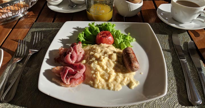 The breakfast options very much mirror what you get at other hotels across the country, starting with fresh fruit (pineapple, watermelon, banana etc), a smoothie, your choice of coffee or tea, plus some form of egg based dish.